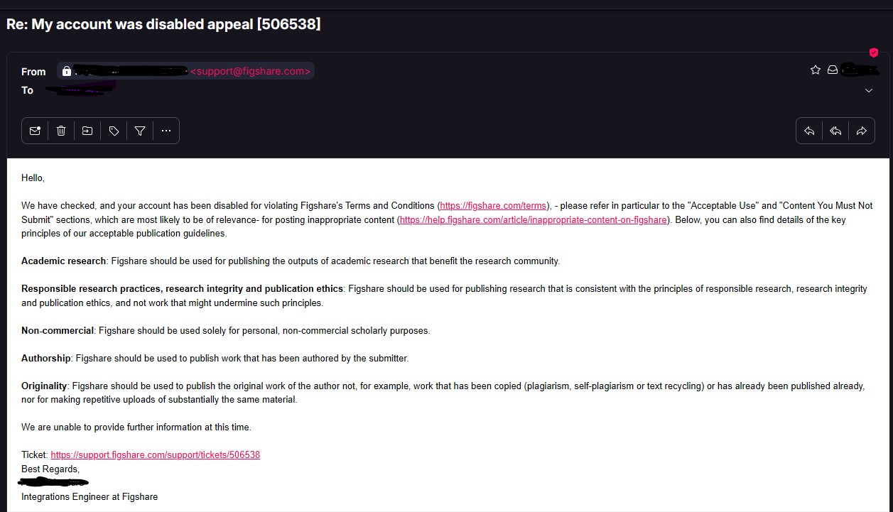 View The Figshare Ban Email